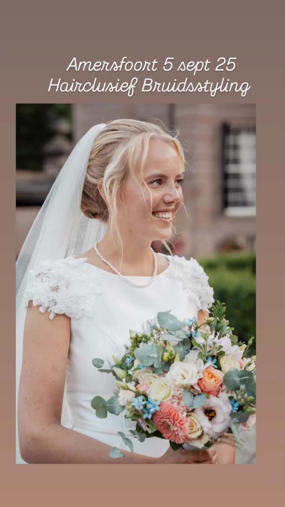 Het team van Hairclusief heeft de afgelopen jaren heel wat bruiden blij kunnen maken met hun bruidskapsel en bruidsmake-up aan huis. Hier zijn enkele voorbeelden van bruiden uit Amersfoort.